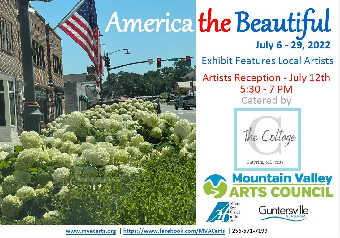 If you’re interested in any of our upcoming exhibits, email us at info@mvacarts.org or mail us a letter at 440 Gunter Avenue, Guntersville, AL 35976 with the following info: